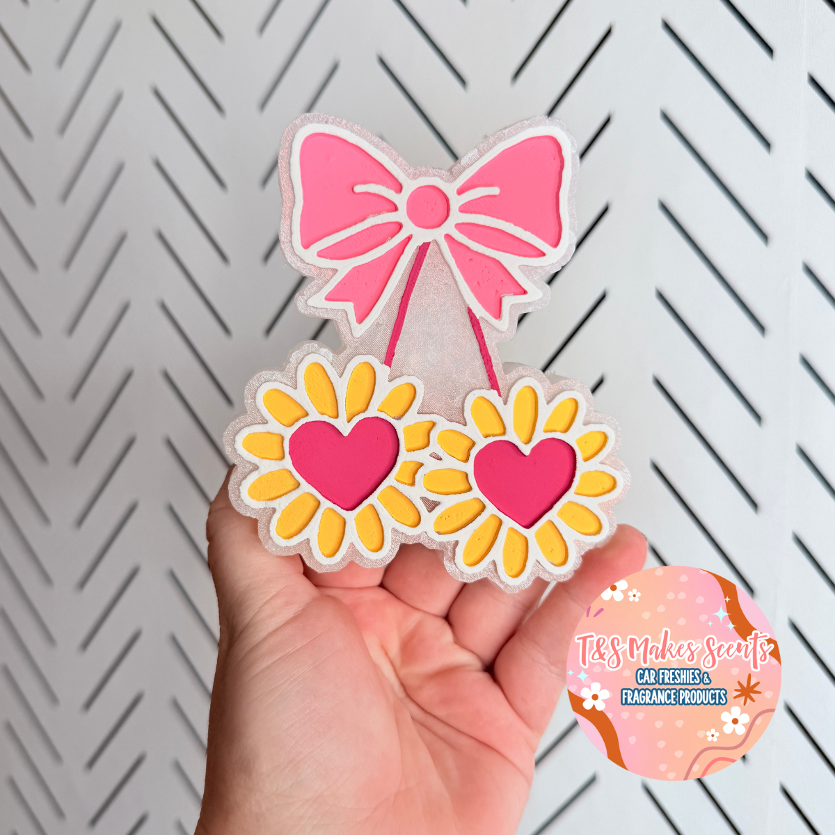 As the maker behind every T&S Makes Scents product, I love putting my creativity into each design. While I’ll absolutely take your color preferences into consideration, all colors and decorations will be left to my creative direction to ensure each freshie is unique and made with care.